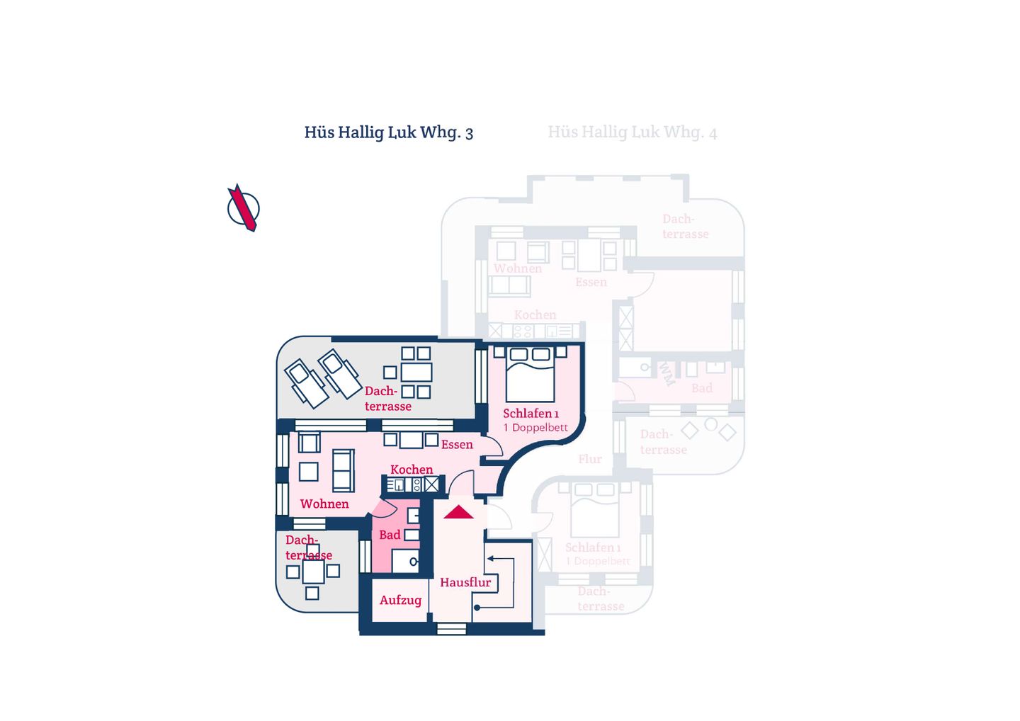 Die Ferienwohnung 3 im Hüs Hallig Luk verfügt über 1 Schlafzimmer und 1 Bad und bietet somit komfortabel Platz für bis zu 2 Personen zuzüglich einer Kleinkinderaufbettung. Auch bis zu 2 Hunde sind herzlich willkommen.